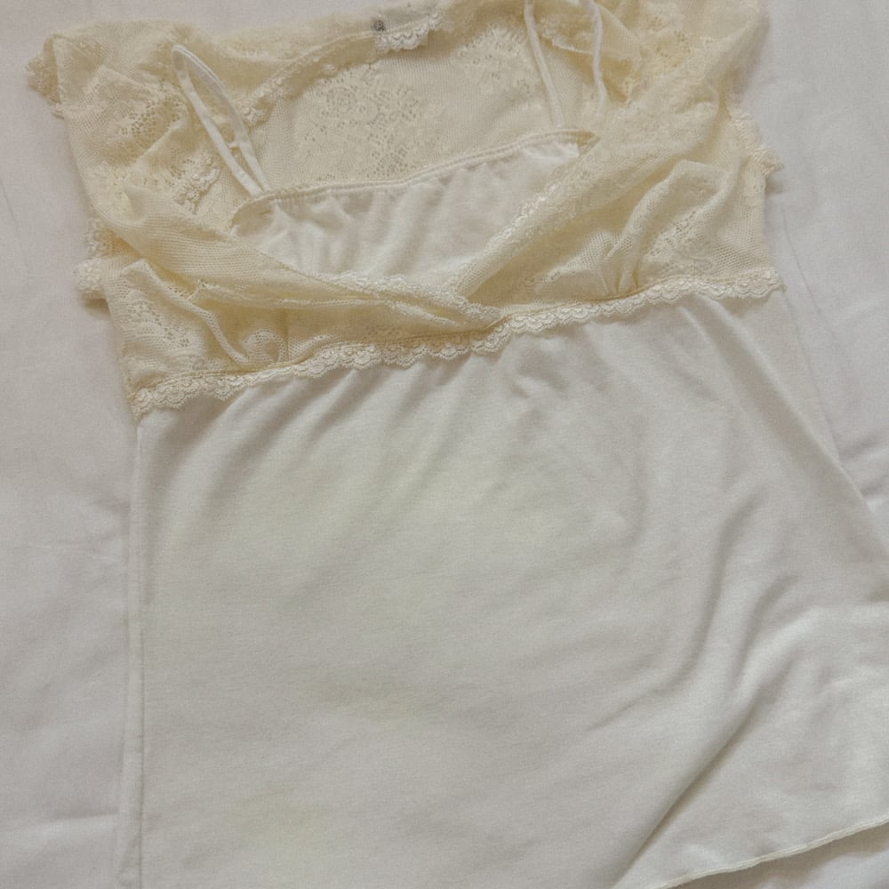 Some flaws noted (price reflected) slight yellowing on the cami bodice below the lace top. Not obvious and does not affect wear.